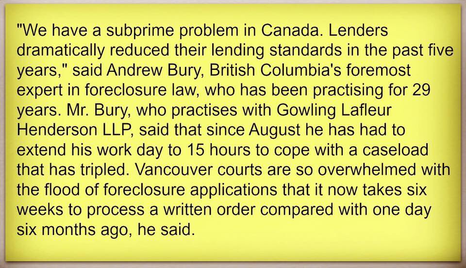 Mortgage quality decline always a tell tale sign to of a market top. I would bet that Victoria is no better.